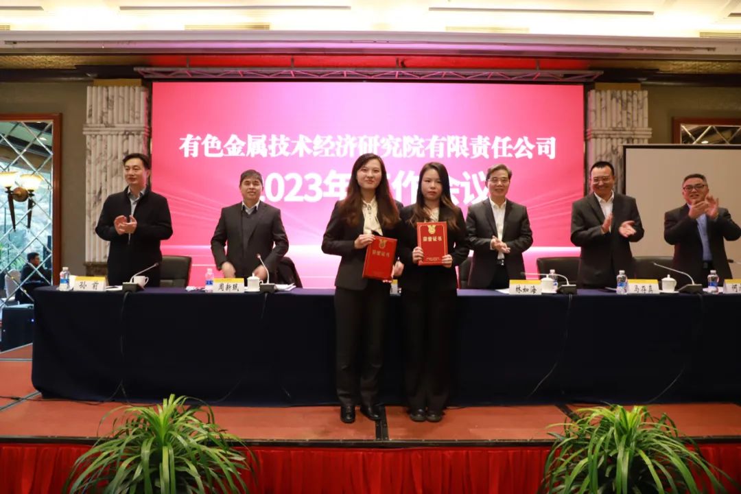 在当日下午召开的有色金属技术经济研究院有限责任公司2023年工作会议上,中国有色金属工业协会党委常委、副会长兼秘书长段德炳,有色金属技术经济研究院有限责任公司党委书记、执行董事林如海,党委副书记、总经理周新珉,副总经理马存真、孙前、何水金为获奖者颁奖。院全体干部职工观摩了本次论文比赛。